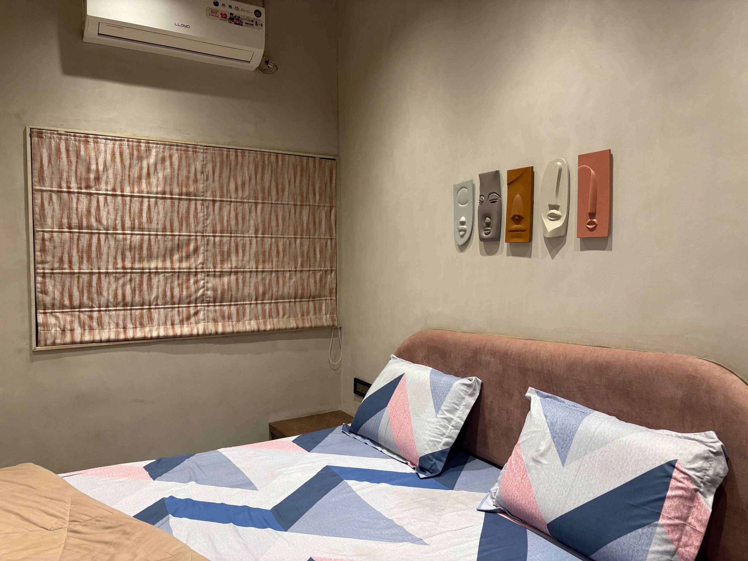 This Bedroom Is Part Of Our Signature Lime Texture Projects In Nashik, Featuring A Warm, Calm, And Modern Interior With Soft Wall Tones, Cozy Lighting, And A Comfortable Layout. The Minimal Lime-Based Wall Finishes And Balanced Décor Create A Peaceful Atmosphere Perfect For Relaxation.